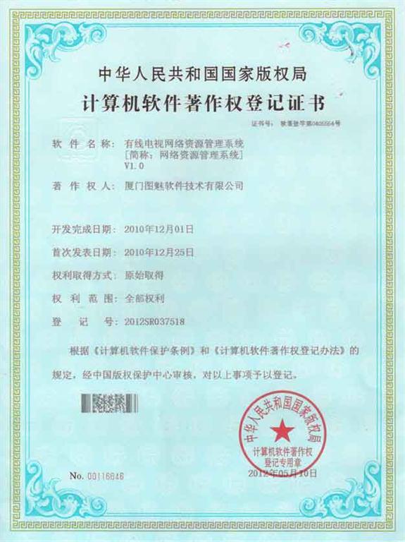 <著作权证书>有线电视网络资源管理系统