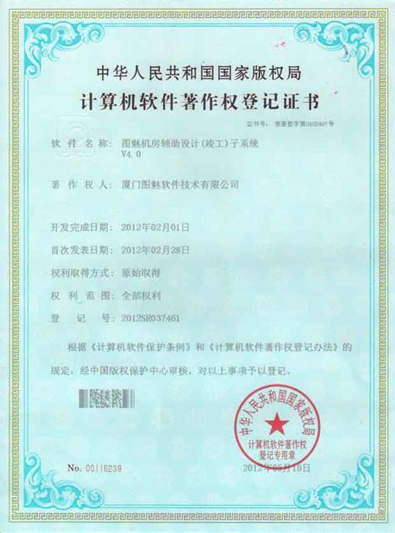 <著作权证书>图魅机房辅助设计(竣工)子系统