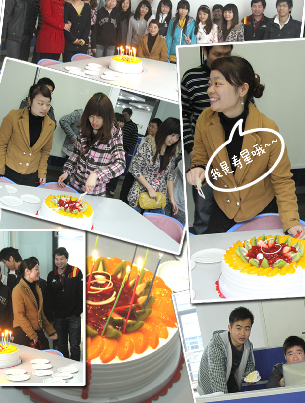 为了鼓励员工的工作热情,公司实施员工生日当天,赠送蛋糕,以表祝贺!今天是公司第一个收到蛋糕的员工与大家共同庆祝自己的生日,周围的同事纷纷表示祝贺,整个公司一片温馨!